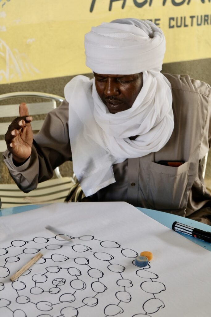 Zwei gute Freunde, beides Tubus aus Bardai, sollten gemeinsam einen Workshop leiten. Es ging um traditionelle Spiele. Wir haben den Workshop total aus der Hand gegeben und völlig ihnen überlassen. Trotzdem fühlte ich mich natürlich für das Gelingen verantwortlich.