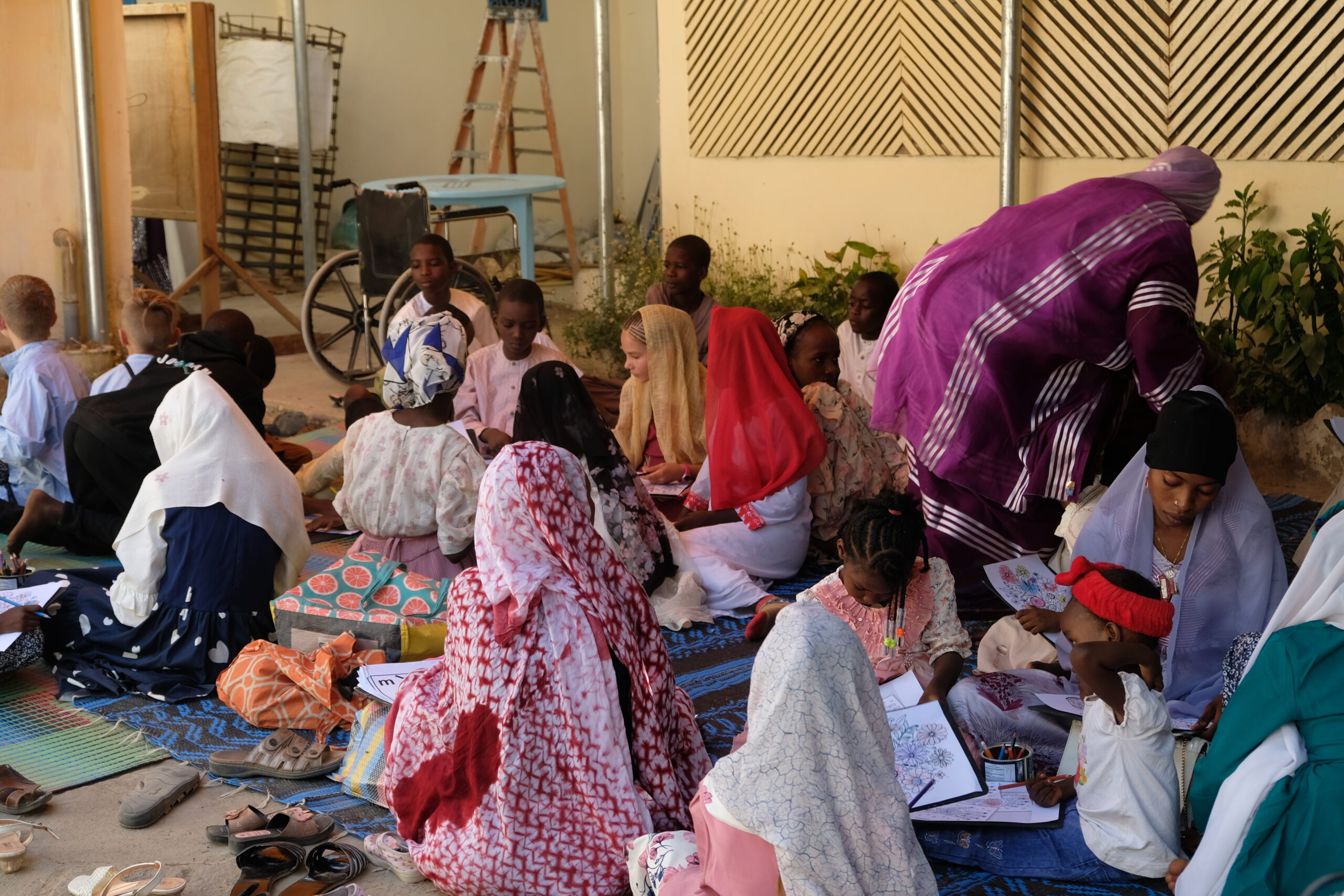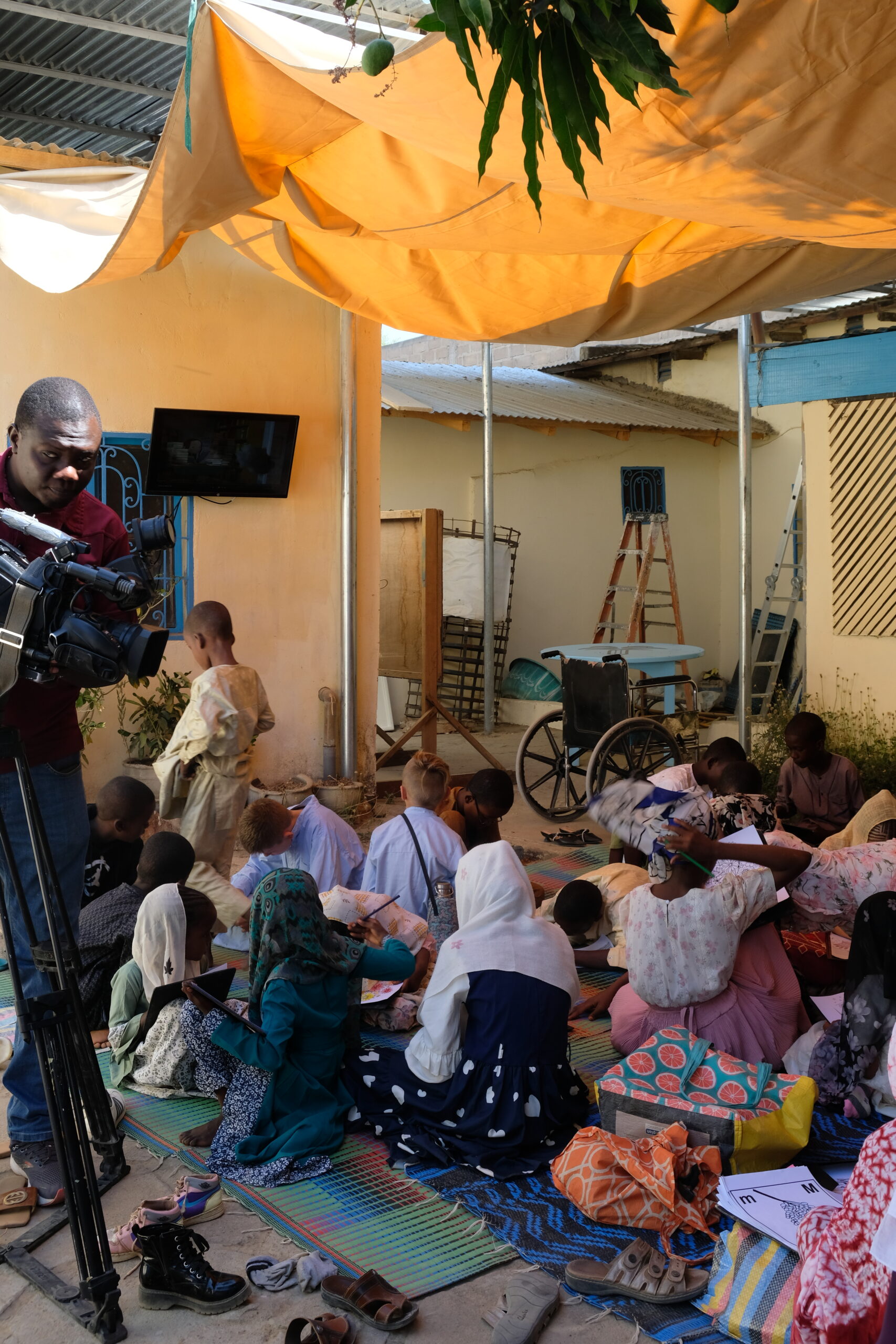 Der Kameramann war die ganze Zeit daran, die Kinder zu filmen, die angenehm ruhig an ihren Ausmalbildern arbeiteten, bevor die Abschlussfeier des „Concours toubou“ losging. Ich ging zu ihm hin, um ihn zu begrüssen. Das Herz lag ihm auf der Zunge als er sagte: “Was ich hier sehe, gefällt mir wahnsinnig gut!” Ich fragte ihn, was denn seine Muttersprache sei. Er meinte, dass er sie eben nicht könne, da er in N’Djamena aufgewachsen sei. Aber dass man hier die Sprache und Kultur dieser Leute so wertschätze und fördere, das berühre ihn sehr. Und tatsächlich. Die beiden Journalisten blieben knapp vier Stunden da. (Normalerweise verschwinden sie nach ein paar guten Aufnahmen wieder.) In einer anschliessenden Nachricht schrieb er uns: Das ging mir direkt ins Herz.