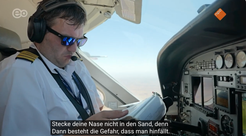 Einmal wurde uns von MAF ein Flug gesponsort, weil “unser Pilot” einer von drei MAF-Piloten war, die in einer niederländische TV-Serie portraitiert wurden. Neben Papua-Neuguinea und Surinam zeigten die sechs Episoden im Nationalfernsehen auch das Pilotenleben im Tschad. Hier ein kleiner Zusammenschnitt von den Szenen zum Flug auf die Oase Gouro. Die Evaluation der Dazaga-Schulen kommt leider nicht vor, die Lehrerinnen wollten nicht im Fernsehen sein. Dafür seht ihr, dass der Pilot nicht nur fliegt und ihr schaut dem Arzt über die Schulter, den wir schon mehrere Male mitgenommen haben.