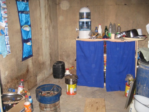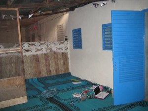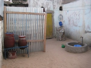 Diese Wohnung befindet sich in einem tschadischen Gehöft. Klingt romantisch, oder? Ist es auch. Eine sandbedeckte Veranda, in der wir Matten auslegen werden, kochen auf Gas und im Solarofen, weder Tische noch Stühle, geschweige denn Schränke oder dergleichen. Mit anderen Worten: permanentes campieren auf einem Ein-Stern-Zeltplatz mit zuweilen fliessendem Wasser, Plumpsklo und „Wechselstrom“. Wer nach diesen Zeilen immer noch romantische Gefühle hat, sei an dieser Stelle herzlichstens eingeladen, uns heimzusuchen!